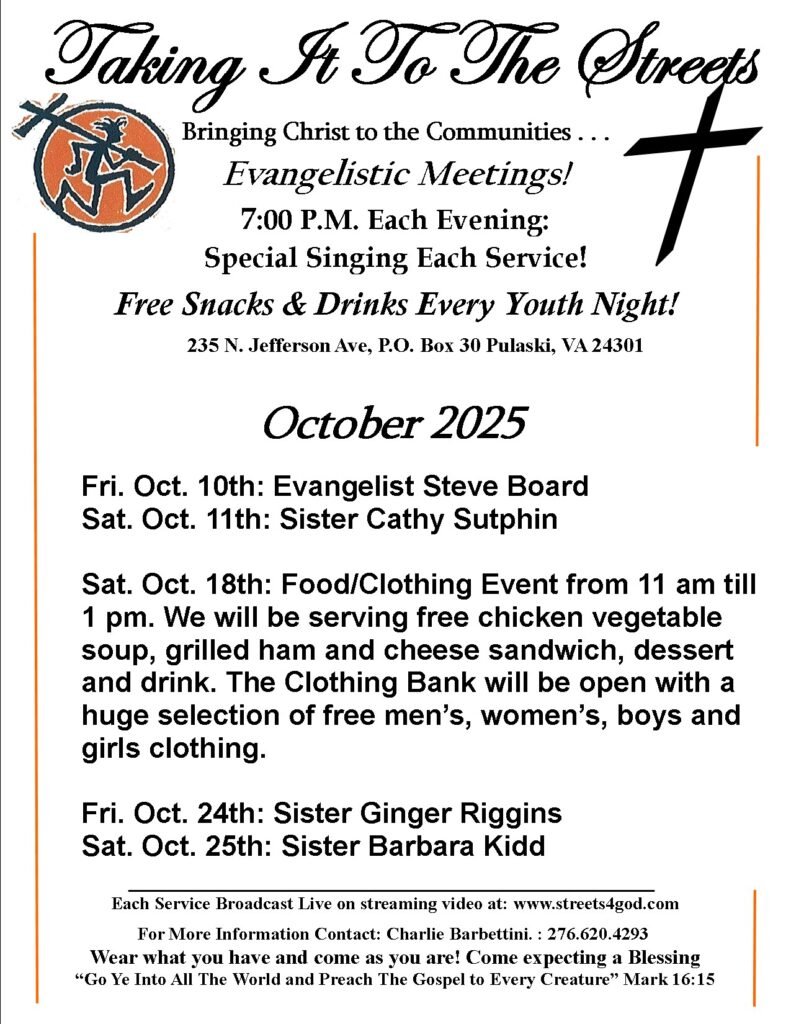 - Food/Clothing Event Saturday Sept.20th 11am till 1 pm: